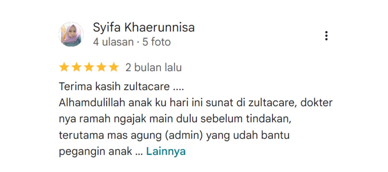 Daftarkan sekarang di Sunat Zulta Bekasi.